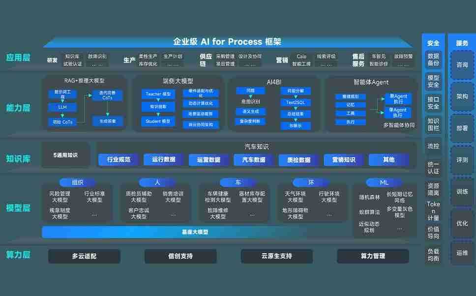 J9娱乐问学智车解决方案是一套基于AI技术的汽车行业智能化系统,,,,覆盖从底层算力到顶层AI应用的全栈方案。。。方案由算力层、、、模型层和应用层组成:算力层,,,,方案支持多种一体机配置,,具备云端灵活部署、、多云适配以及动态优化计算资源的能力;模型层,,J9娱乐问学平台版提供了企业级AI应用一站式构建与管理平台,,支持基于后训练强化技术的汽车企业专属模型的训练、、、评测和运营;应用层,,,J9娱乐问学DeepSeek版提供包括超级员工、、、智能招采、、、智能营销、、智能客服、、、AI for BI等一系列解决方案,,,,可助力汽车行业实现数字化转型,,,,让管理更智能、、、、响应更敏捷。。。